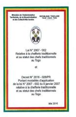 Loi No. 2007-002, Relative a la chefferie traditionnelle et au statut des chefs traditionnels au Togo et Decret No. 2016-028/PR Portant modalities dapplication de la loi No. 2007 – 002 du 8 janvier 2007 relative a la chefferie traditionnelle et au statut des chefs traditionnelle au Togo